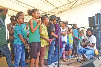 Ce sont les écoliers de Nindhia (Houaïlou) qui ont ouvert le bal sur scène avec leur chant, Culte à l’igname. La Fête se poursuit aujourd’hui à partir de 8 heures avec tous les stands et animations habituels.