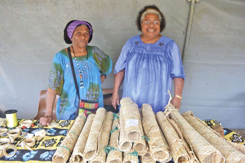 Sur son stand, Elise Wy (à droite) a proposé des nattes de coutume qu’elle a confectionnées à partir des feuilles de pandanus. Ces nattes traditionnelles sont appelées à remplacer le tissu utilisé lors des cérémonies coutumières.