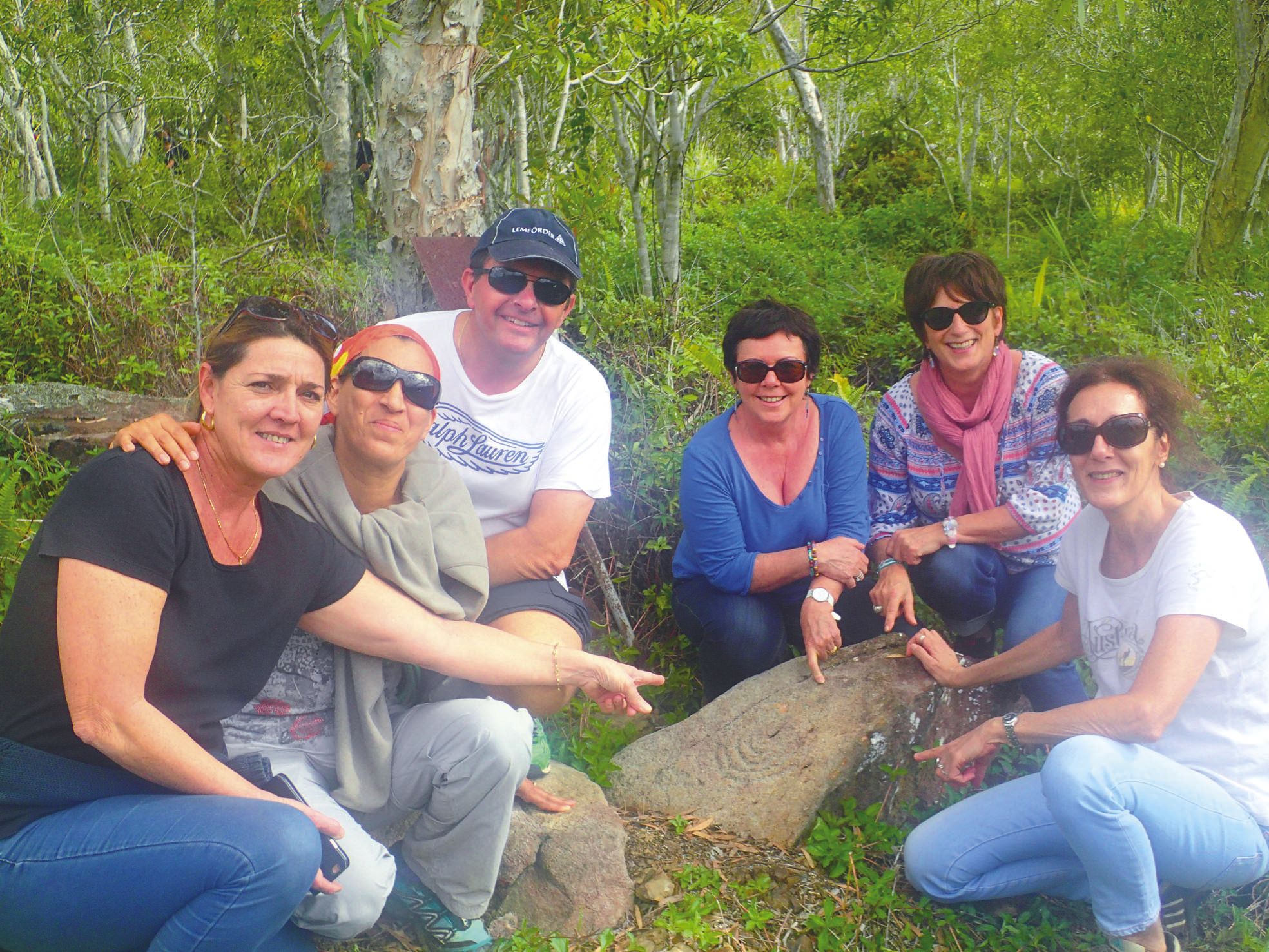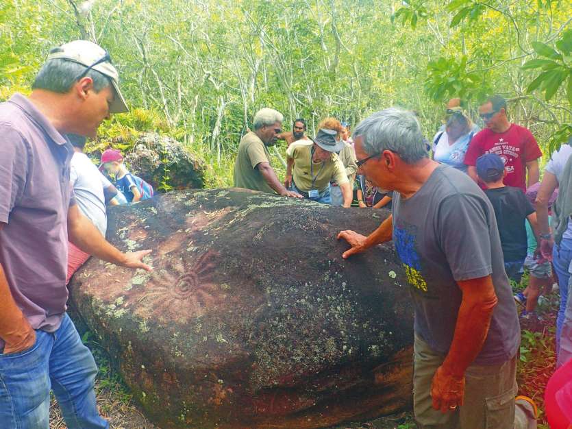 Après la découverte du patrimoine minier sur la mine du Plateau SLN, les participants se sont rendus à la tribu de Koua où ils ont pu découvrir le patrimoine archéologique des lieux grâce à une visite des pétroglyphes avec Charles Moindou.