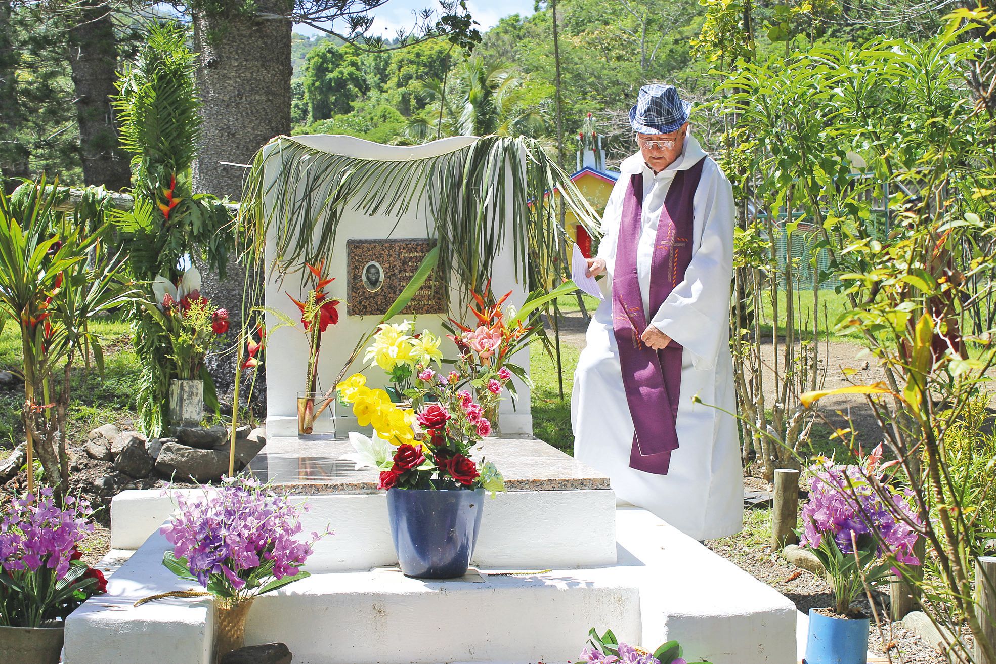 Avant la célébration eucharistique, les personnes présentes sont allées se recueillir sur la tombe du père Ambroise Wimbe, né à la tribu de Ouaoué. Décédé le 8 juin 2002, ce dernier a exercé au diocèse de Nouméa. Un vibrant hommage lui a été rendu par le révérend père François de Vivies, curé des paroisses du Sacré-Cœur et d’Azareu.