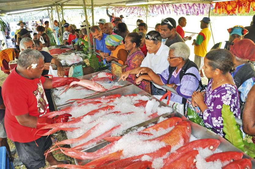 Les étals de vivaneau se sont remplis et désemplis en un clin d’œil. Très attendus, les poissons des profondeurs se sont arrachés en quelques minutes avant même l’arrivée des touristes. Le marché s’est ouvert après les discours des autorités de l’île, premiers clients de cette vente.