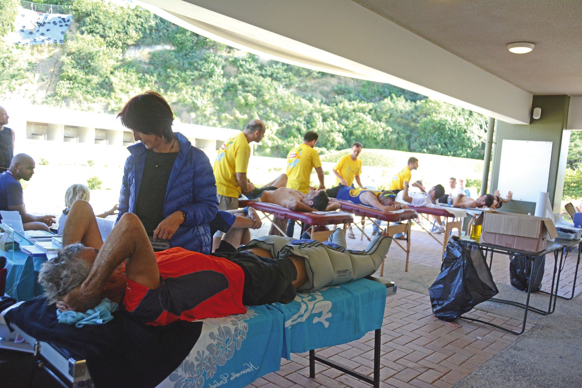 Après l’effort, le réconfort. Le service médical avait installé sous les travées de l’hippodrome des lits de camp. Objectif : accueillir les corps meurtris par la course et leur prodiguer quelques massages bienvenus.