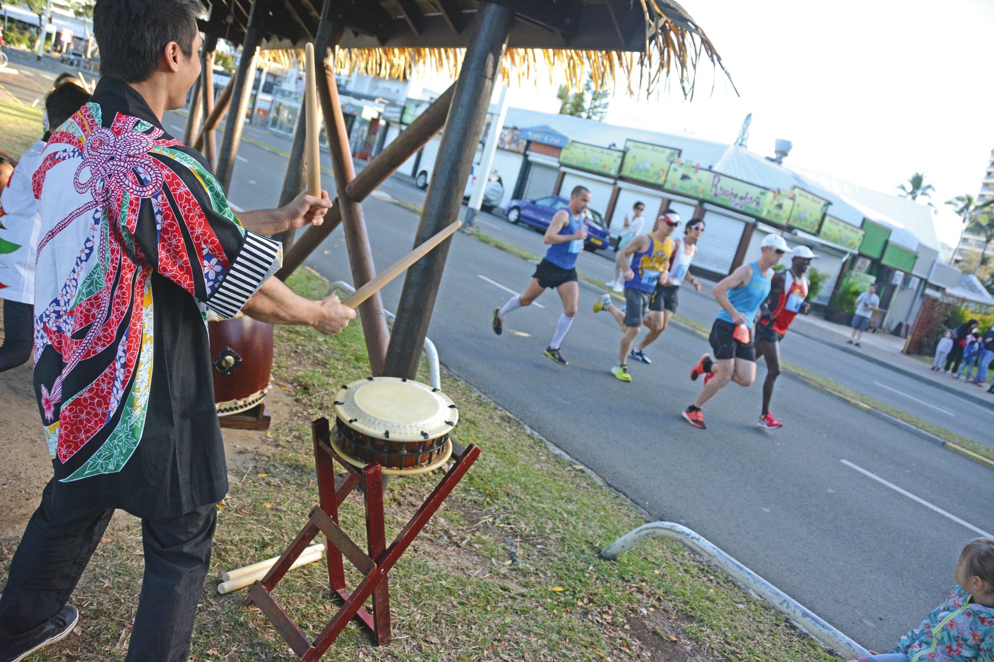 Le passage le long de la plage de l’anse Vata s’est fait au rythme des tambours japonais hier. Et les percussionnistes ont eux aussi eu droit à leur marathon puisqu’ils ont joué quasiment sans s’arrêter pendant quatre heures.