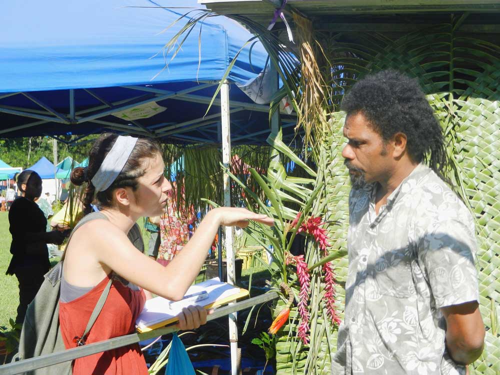 Les professionnels et exposants ont été à l'écoute des visiteurs et n'ont pas hésité à échanger, comme ici, le GAPCE répondant aux questions de Joanna, étudiante en BTS agricole de Pouembout, et intéressée par la filière café de Nouvelle-Calédonie.