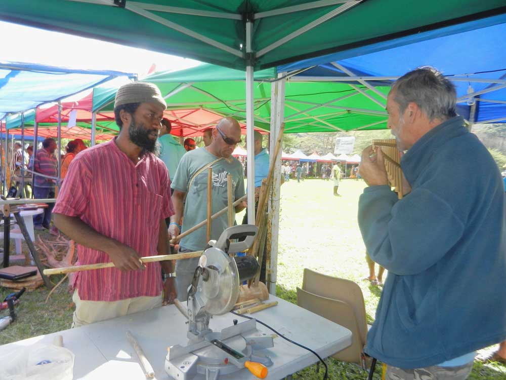 Des stands de produits locaux, bijoux de Tahiti, sculpture, plantes, vannerie, fabrications d'instruments traditionnels (photo), couture étaient présents avec démonstrations et initiations, pour le plus grand plaisir des visiteurs.