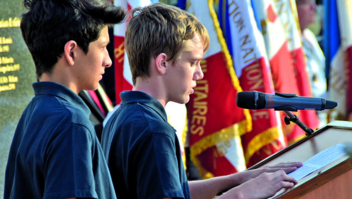 Deux élèves de la classe défense du collège de Magenta ont participé à la commémoration du centenaire de l’Armistice. Photo Cyril Terrien