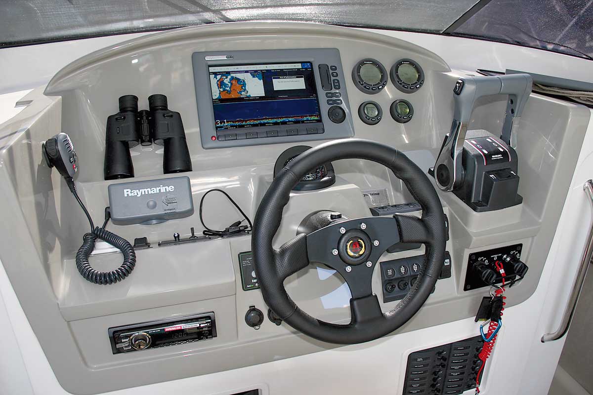 Le tableau de bord est très complet et spacieux pour y installer l'instrumentation. La barre est hydraulique pour un pilotage au doigt et à l'œil.