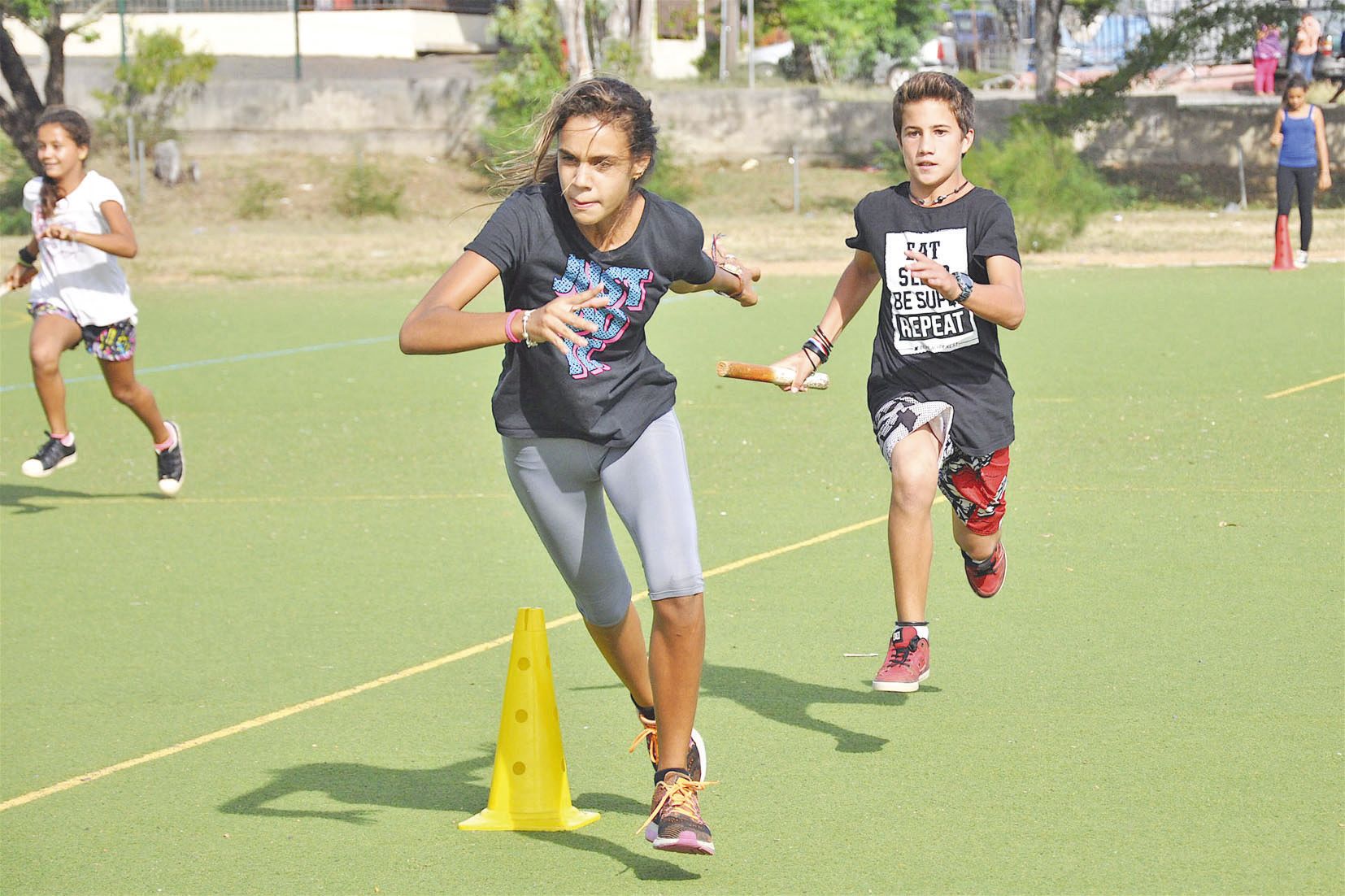 Cet atelier proposait des exercices d’approfondissement du relais où les jeunes athlètes avaient à travailler les départs et les passages de témoin en situation réelle de course.