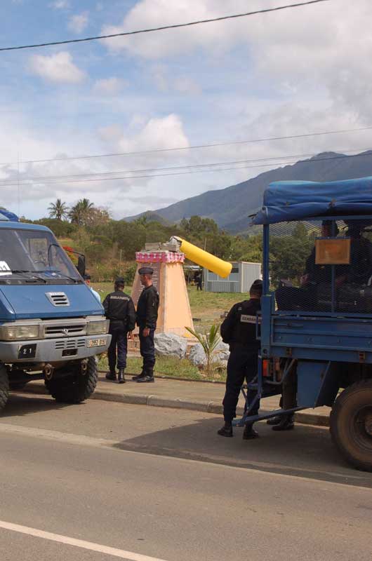 Le comité Pyrania expulsé de son ; le 12/12/2011 - 10:11En trois heures, le terrain du morcellement Baronnet où s'est installé le comité Pyrania a été vidé de ses constructions sous les yeux de tout un escadron de mobiles et de plusieurs habitants. La statue, le drapeau et la plaque ont été mis de côté.
