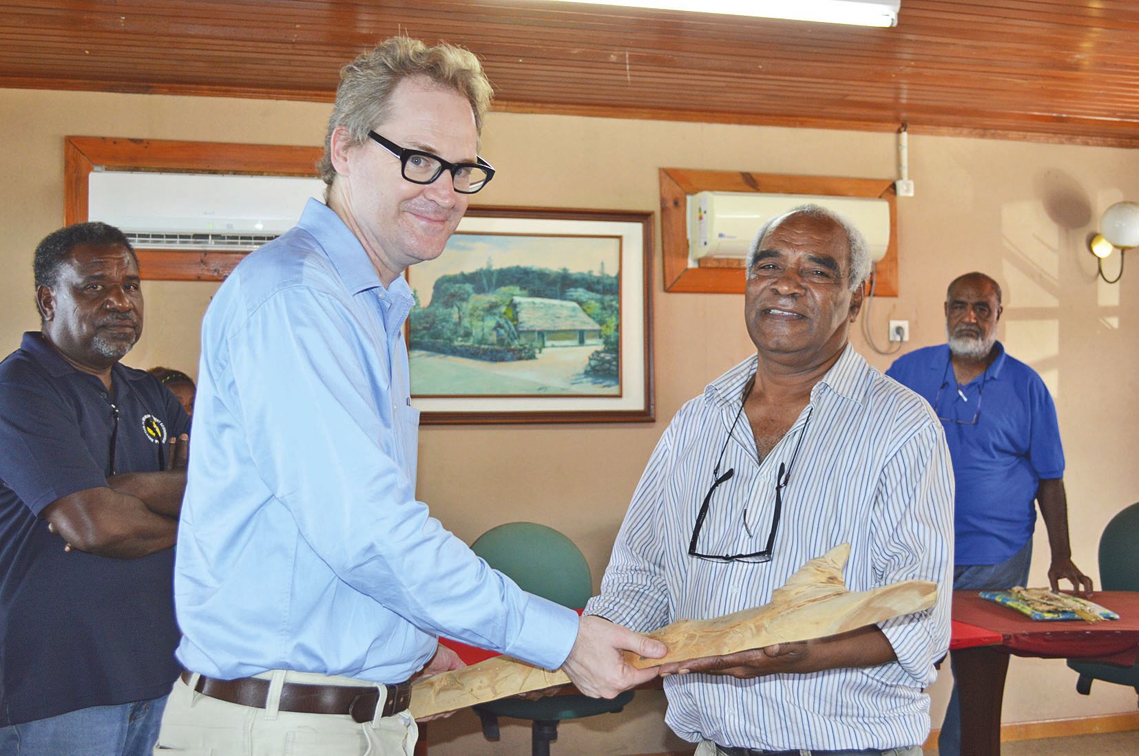 Représentant les intérêts australiens en Nouvelle-Calédonie, le consul général a débuté sa journée en rencontrant élus et agents communaux et provinciaux. En contrepartie de l’activité touristique offerte aux Australiens, Maré espère pouvoir mettre en place des dispositifs de formation et d’échange avec l’Australie. C’est Pierre Ngaiohni, maire de Maré, qui a présenté le geste coutumier de bienvenue.