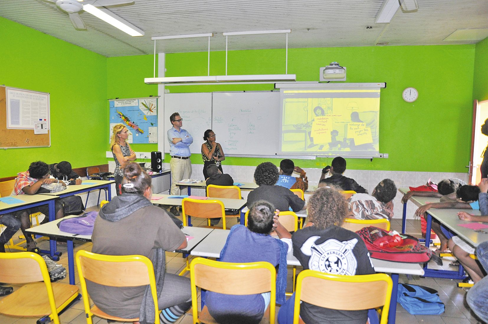 Initialement invité par Véronique Lehoullier Mollot en charge du comité EEE en Nouvelle-Calédonie, Paul Wilson a tenu à participer à l’atelier qu’elle a animé auprès des jeunes collégiens de La Roche.