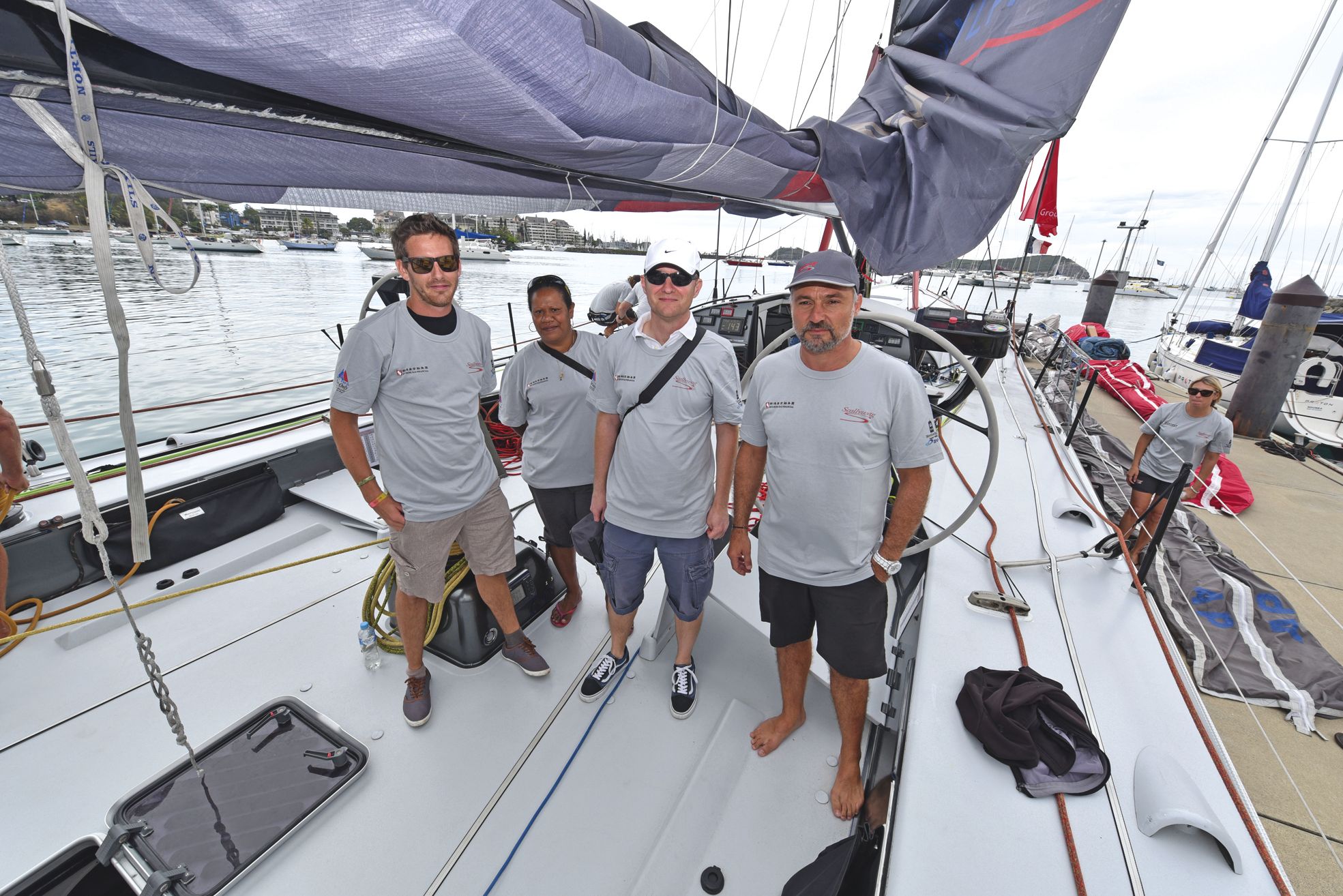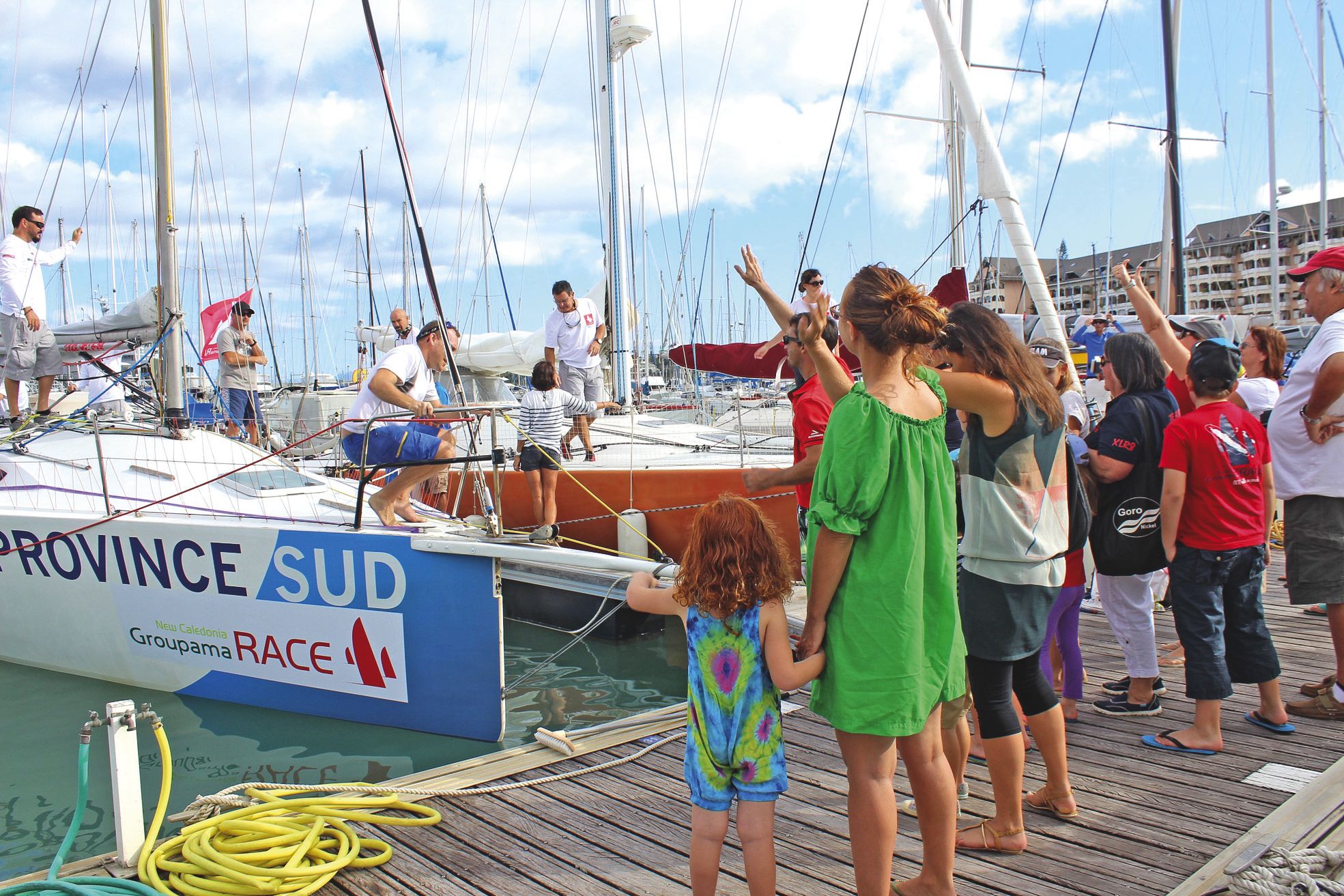 Sur les pontons du Cercle nautique calédonien, les familles des marins étaient présentes pour leur souhaiter bonne chance.