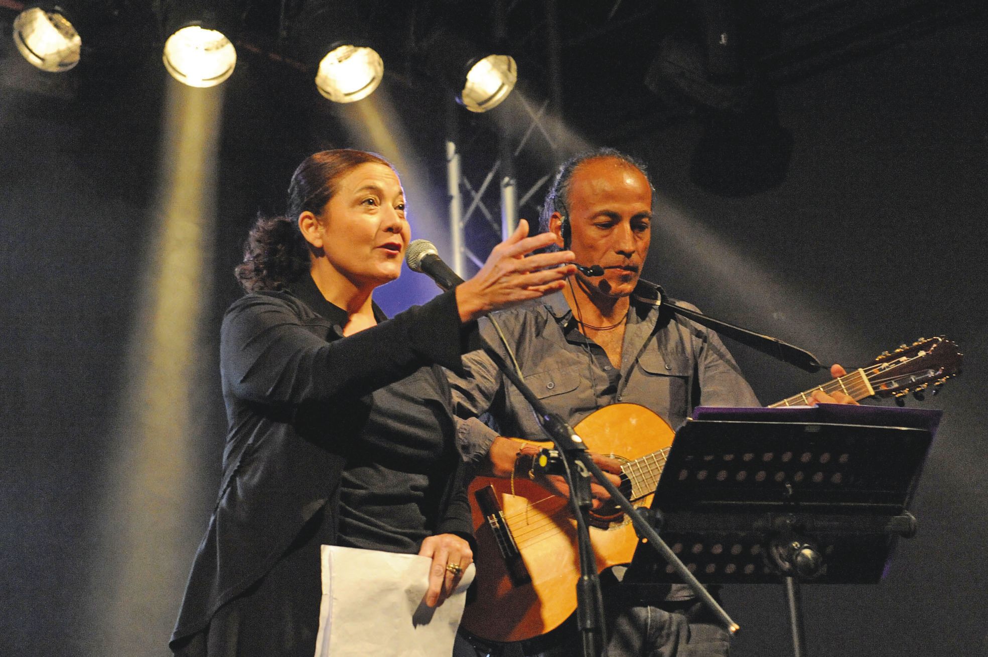 Puis, changement de décor, le ton se fait plus solennel. Accompagnée du guitariste, Ivan Canales Sagaldo, la comédienne et metteure en scène, Marcela Pizarro, a choisi des textes forts, notamment du poète et écrivain Pablo Neruda, pour évoquer l’histoire mouvementée du Chili, entre coup d’État et guerre civile. Une façon de rendre hommage aux disparus. Le public, respectueux, a gardé le silence le temps de leur prestation, mais à en juger par les applaudissements nourris, il a su apprécier la puissance des textes
