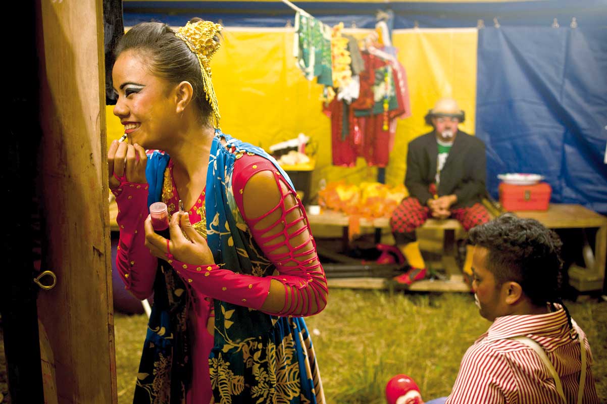 Le Magic Circus, côté artistes ; le 07/22/2011 - 22:20Si les artistes sont concentrés, la bonne humeur constatée sur scène les accompagne également dans les coulisses.Photo : Mathurin Derel