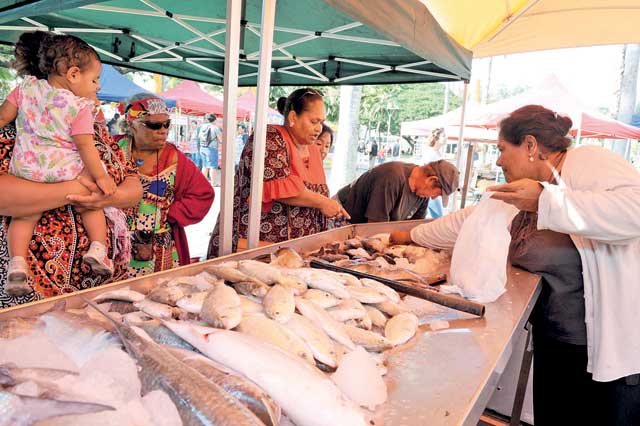 Les traditionnels stands de poissons ont continué à faire des adeptes à l’image de celui de Malia (à droite). Cette dernière s’est déplacée depuis Poum pour offrir, entre autres, des mulets et des picots aux Nouméens.