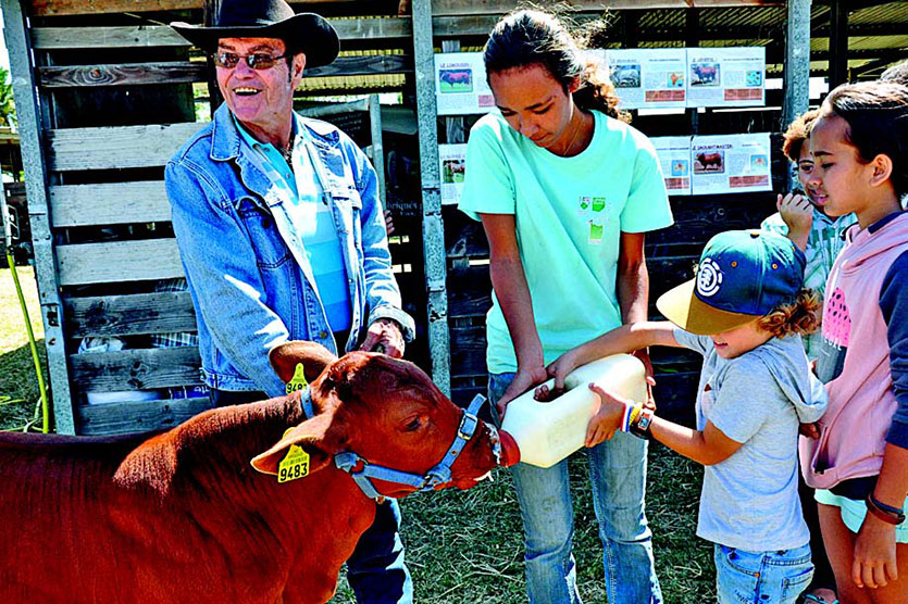 L’Upra Bovine a organisé à la grande joie des enfants une exposition biberon où Osène, un jeune veau Sénémaster (croisement Sénépol – Droughmaster) de l’élevage Wilfrid Féré, très gourmand, s’est volontiers prêté au jeu.