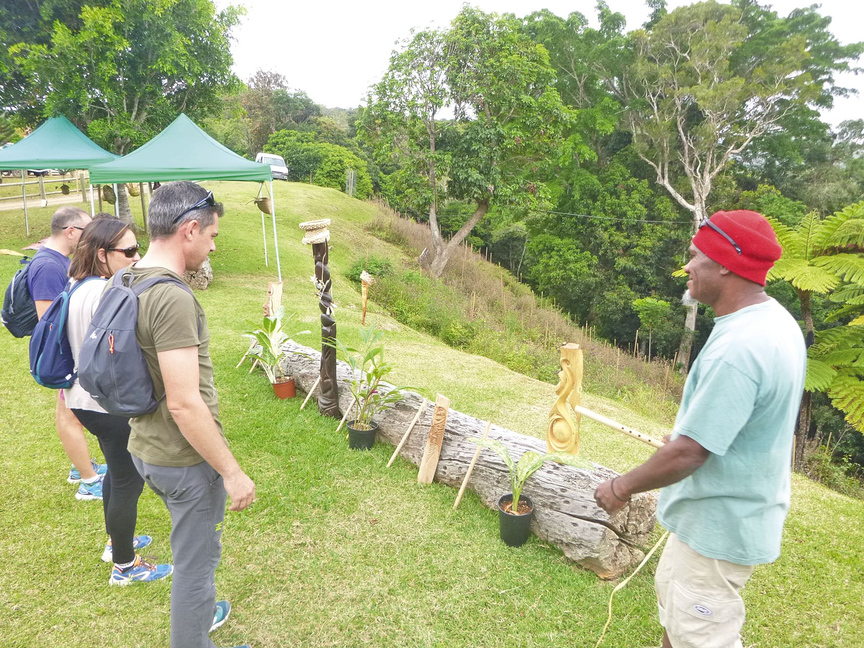 5 > Dimanche, au lever du jour, c’est l’activité chant du cagou qui a marqué le début de la journée, suivie d’une randonnée pédestre guidée et d’une initiation à la permaculture (notre photo), où il a été longuement question de l’eau.