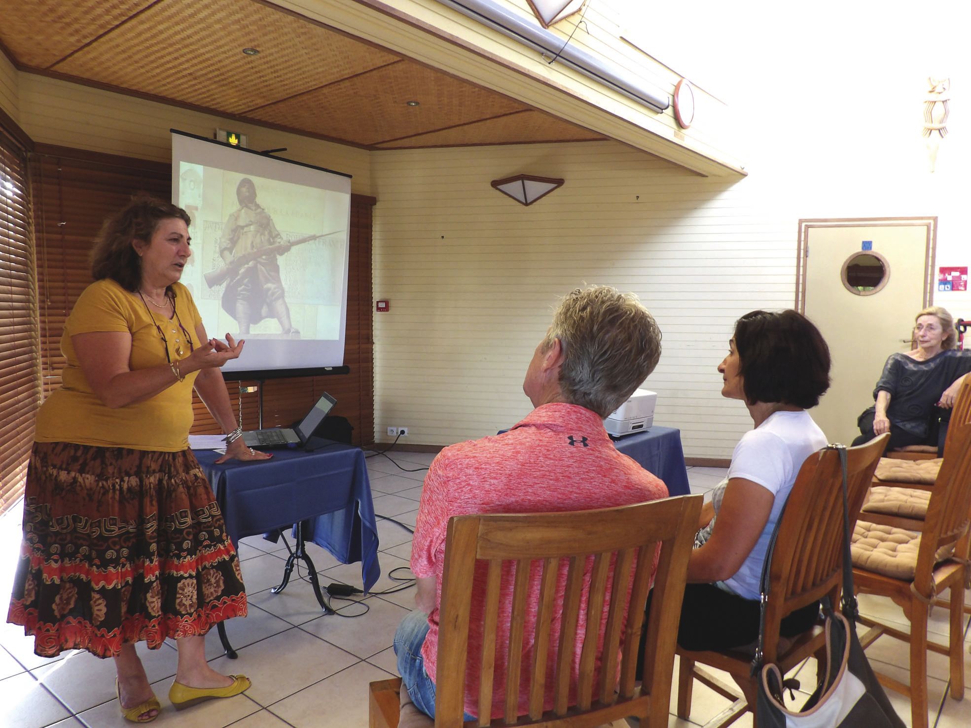 Le cercle mixte des forces armées a accueilli deux expositions proposées par l’association In Memoriam, associée aux Fanc pour l’occasion. L’une portait sur la présentation des carnets journaliers du lieutenant Émile Destelle, arrivé en 1878, où il notait tout ce qu’il observait. Un bambou gravé non répertorié lui appartenant a également été présenté, ainsi qu’un casse-tête. La seconde exposition était axée sur le devoir de mémoire honorant les tirailleurs kanak. Une projection débat sur le patrimoine militaire de Nouméa, animée par Stéphane Pannoux, maître de conférences honoraire en histoire, a attiré une quarantaine de passionnés.