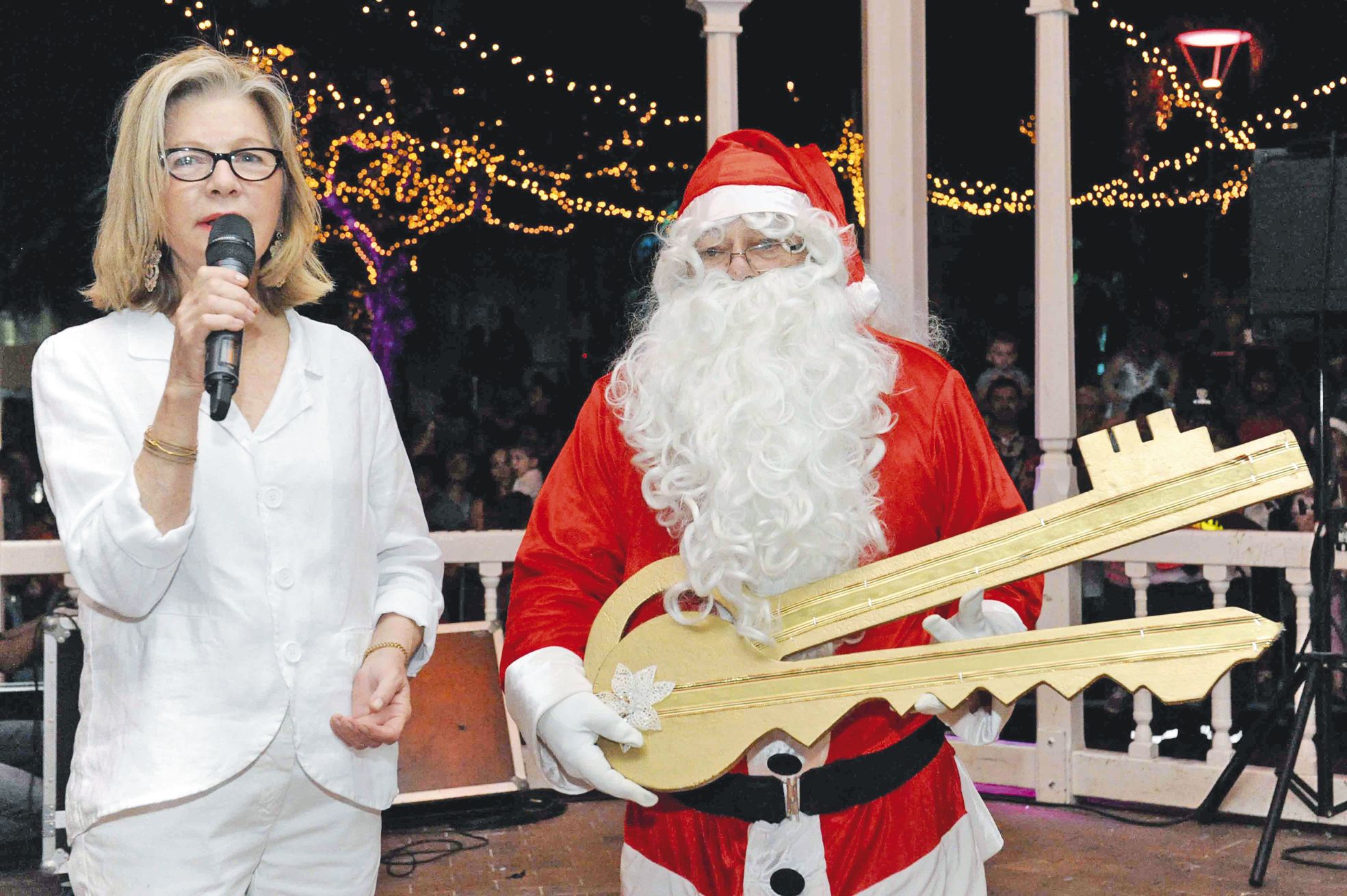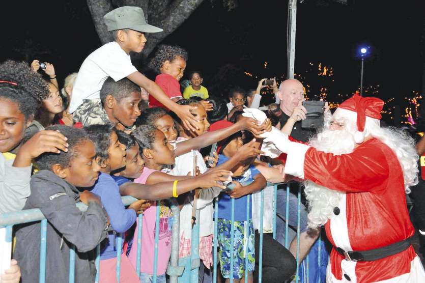 La remise des clés de la ville par la députée-maire Sonia Lagarde, sous le kiosque à musique, est le moment phare de la soirée. C’est grâce à elles que le grand manitou des cadeaux peut les distribuer dans toutes les maisons de Nouméa. Dans son discours, il a appelé les enfants à être sages et à bien travailler à l’école.