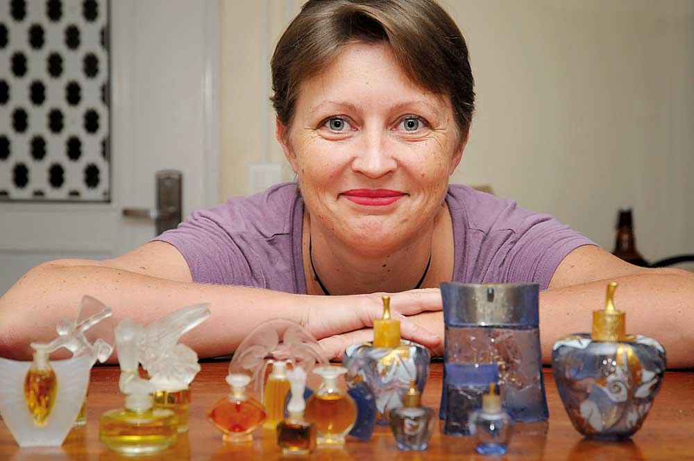 Natacha Broudissou possède plus de huit cents bouteilles de parfum miniatures. Elle admire particulièrement les flacons avec un bouchon de verre comme ceux des parfums Nina Ricci.