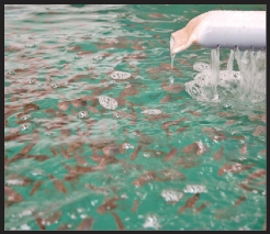 Répartis dans une dizaine de bacs, plusieurs milliers d'alevins de picots rayés, à différents stades de maturation, couvent. Herbivores, ils sont nourris plusieurs fois par jour d'une poudre à base de composés végétaux. A l'âge de trois mois, ils sont traRépartis dans une dizaine de bacs, plusieurs milliers d'alevins de picots rayés, à différents stades de maturation, couvent. Herbivores, ils sont nourris plusieurs fois par jour d'une poudre à base de composés végétaux. A l'âge de trois mois, ils sont tra