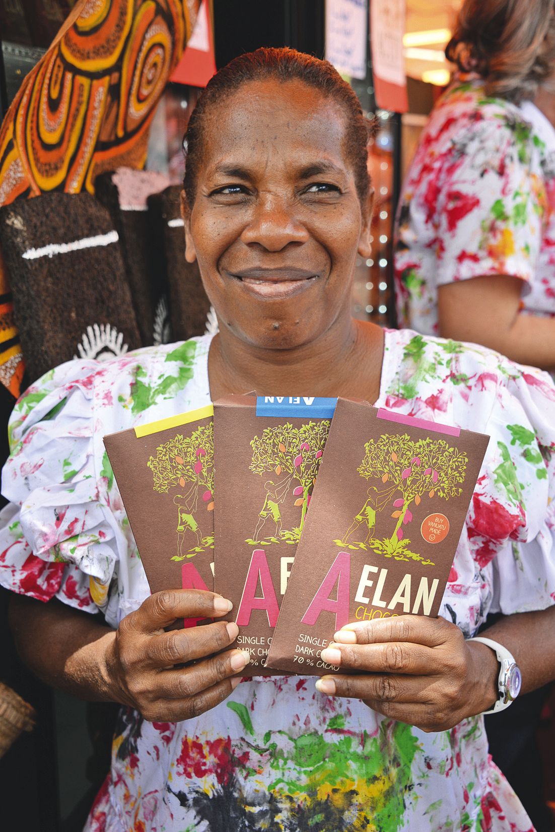 Un des produits phares cette année : le chocolat noir du Vanuatu produit par l’association à but non lucratif, Activ. Elle promeut les produits des îles vanuataises pour un prix équitable. Comme ces trois tablettes de chocolats 70 % cacao, issues des fèves de trois îles : Santo, Malekula et Epi.