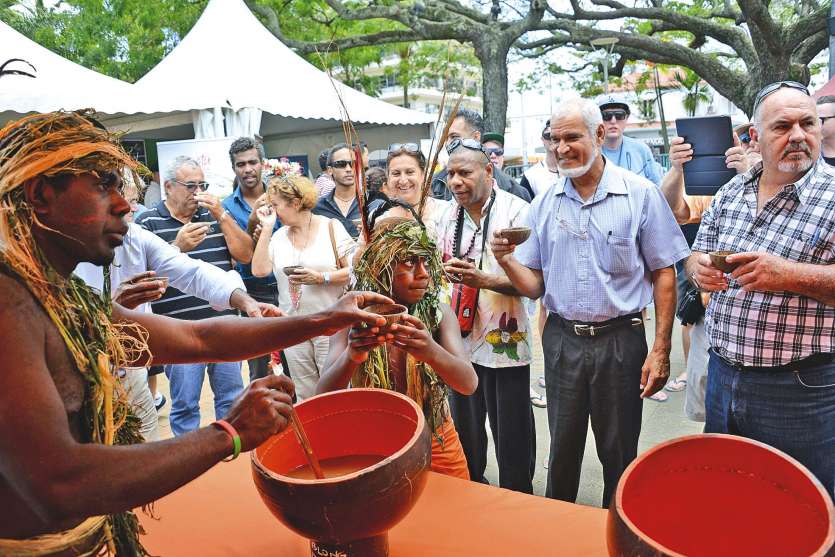 Après la coutume, les représentants du Caillou et du Vanuatu ont inauguré l’événement en levant un shell de kava vert frais,
