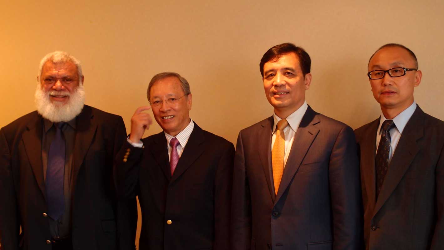 Le rêve chinois de la SMSP ; le 02/27/2012 - 22:07Dimanche à Sydney, le président de la province Nord, Paul Néaoutyine, et André Dang, P-DG de la SMSP, ont échangé sur la construction du partenariat avec le patron du groupe chinois Jinchuan, Yang Zhiqiang, et son collaborateur Yinin Zhang.Photo : DR