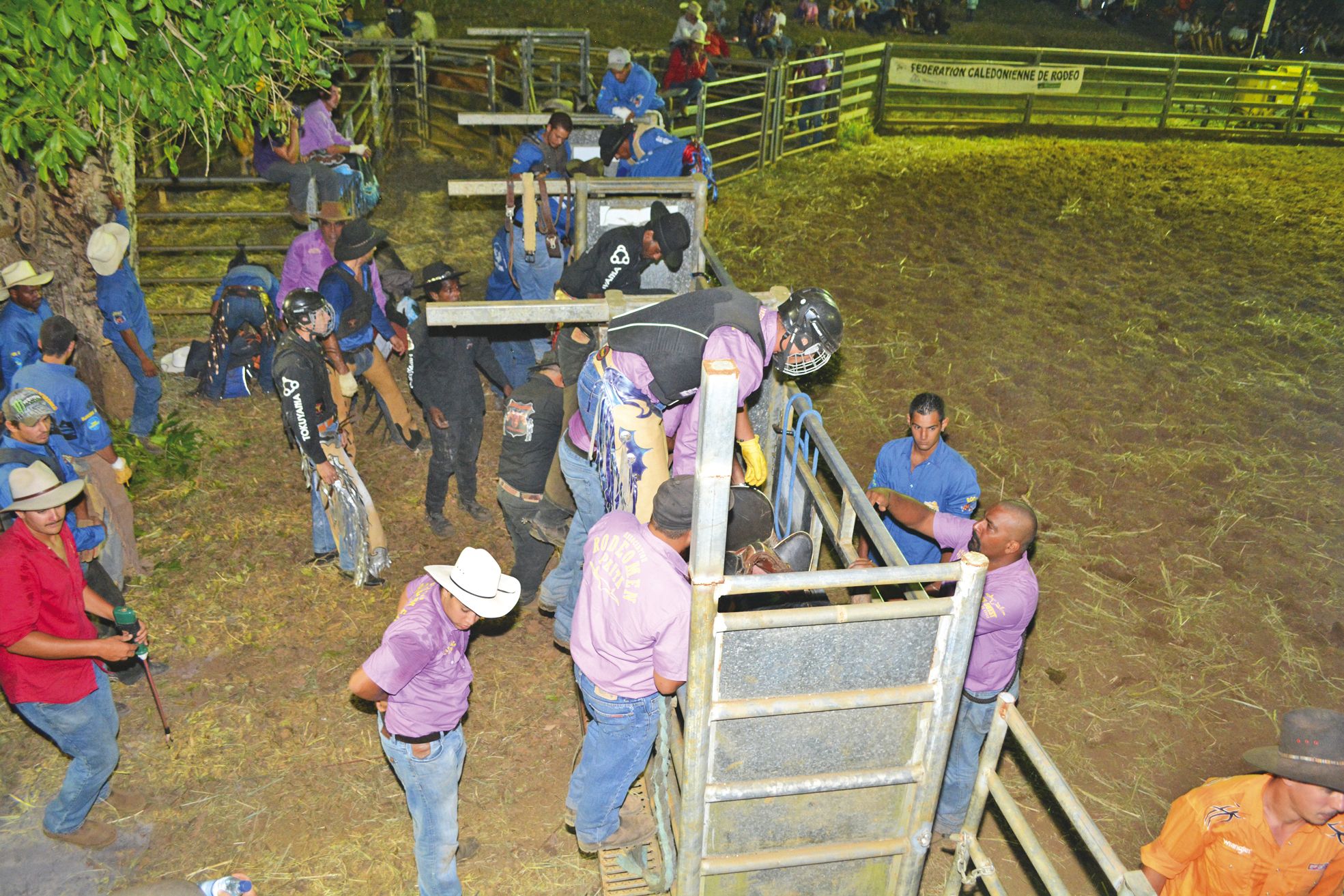 1 > Le rodéo, c’est d’abord le carré où se passe le show. Mais derrière, c’est toute une équipe qui s’affaire dans l’ombre pour préparer les animaux, et épauler celui qui va chevaucher les bêtes en furie. « C’est très physique ce que font ces garçons. Sans eux, il n’y aurait pas de rodéo », a lancé au micro, Nathalie Bartement, la présidente de la Fédération de rodéo.