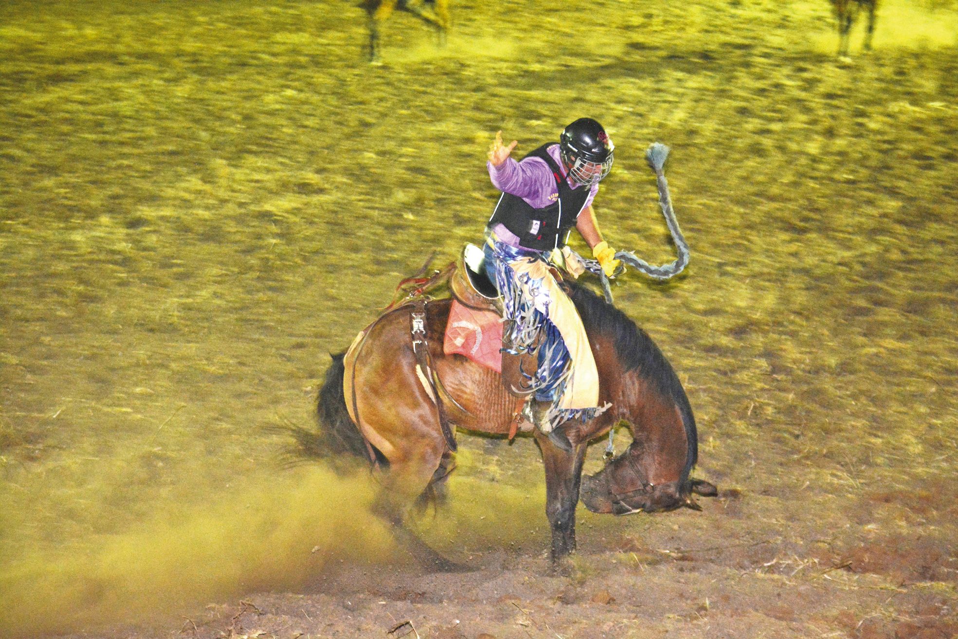 2 > Les meilleurs rodeomen de la discipline ont pris part à cette compétition nocturne. En monte à cheval, à bœuf, à dos de taureau ou encore à la sellette (sans selle, ni étriers), les trente concurrents ont donné le meilleur d’eux-mêmes et offert du très beau spectacle.