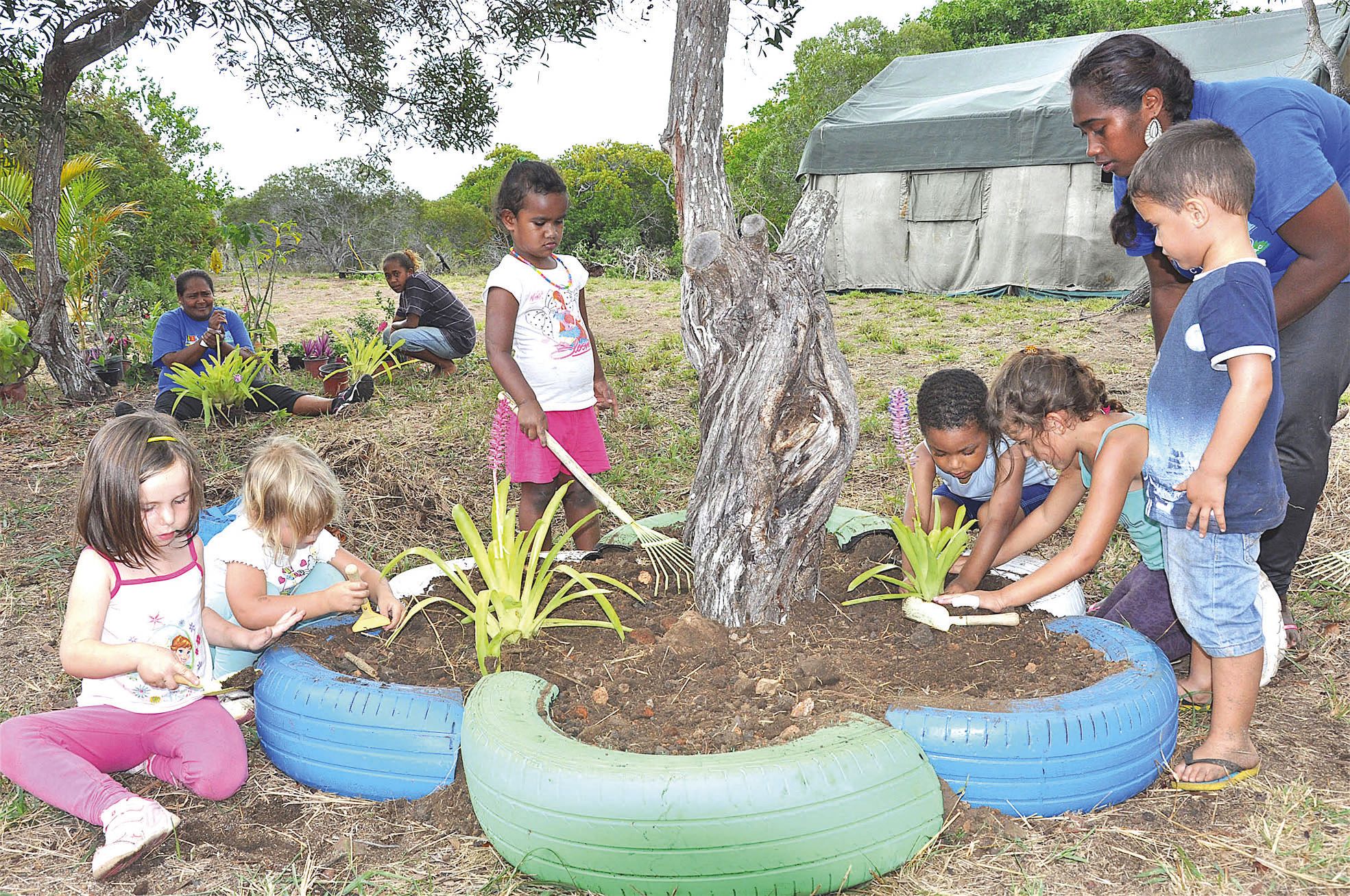 2 > Les plus jeunes, le groupe des Hibiscus, placés sur la responsabilité de Susana, leur animatrice, ont joué aux apprentis jardiniers en mettant en terre plusieurs plantes à fleurs afin d’embellir leur cadre de vie pendant les vacances.