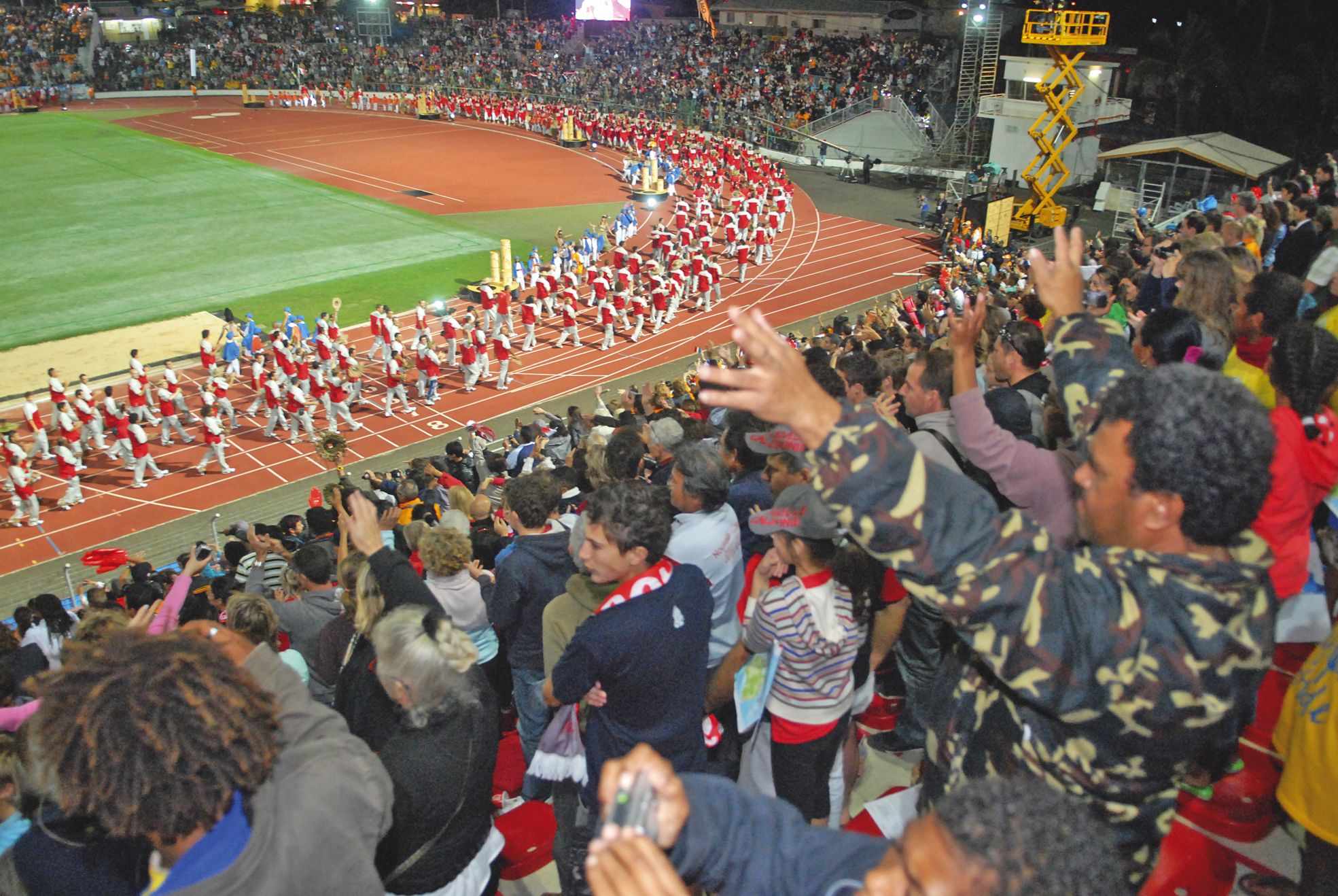 3 > 27 août 2011. La Calédonie accueille pour la troisième fois les Jeux du Pacifique. Une nouvelle fois, c’est au stade Numa-Daly qu’est organisée la cérémonie d’ouverture sous les applaudissements de près de 11 000 personnes. Record d’affluence battu. Pour l’occasion, des gradins avaient été rajoutés.