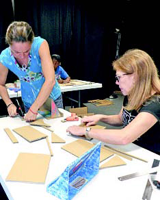 RIVIÈRE-SALÉE. Samedi, un atelier créatif de la médiathèque a permis à quelques participants d’apprendre à réaliser des porte-tablettes et un mini-meuble de rangement à partir de carton de récupération. Photo K.P