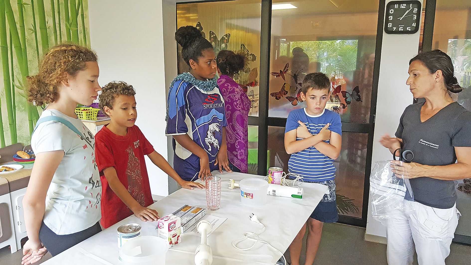 2 > La cuisine était à l’honneur, samedi, à la Maison de la famille, dans le cadre de la manifestation mensuelle « Samedi découvertes ». Avec, le matin, un atelier d’initiation au goût destiné aux jeunes enfants et, l’après-midi, un atelier de cuisine moléculaire (photo) destiné aux ados, chargés de réaliser une mousse au chocolat sans œufs.