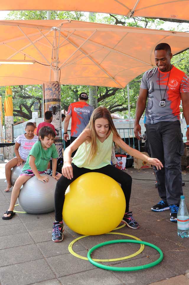 Les acrobates de Yamak Pacifik ont dévoilé l’étendue de leurs talents sur une structure en échafaudage spécialement installée pour l’occasion. Des initiations pour les jeunes étaient aussi encadrées par un membre du groupe, Simane.