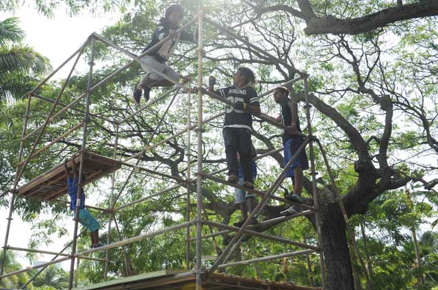 Les structures d’accrobranche et le mur d’escalade de Loisirs concept ont attiré de nombreux enfants qui ont mis à l’épreuve leur sens de l’équilibre et leur adresse.