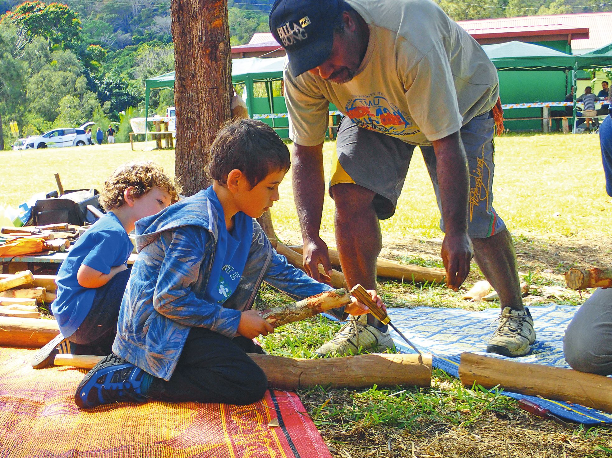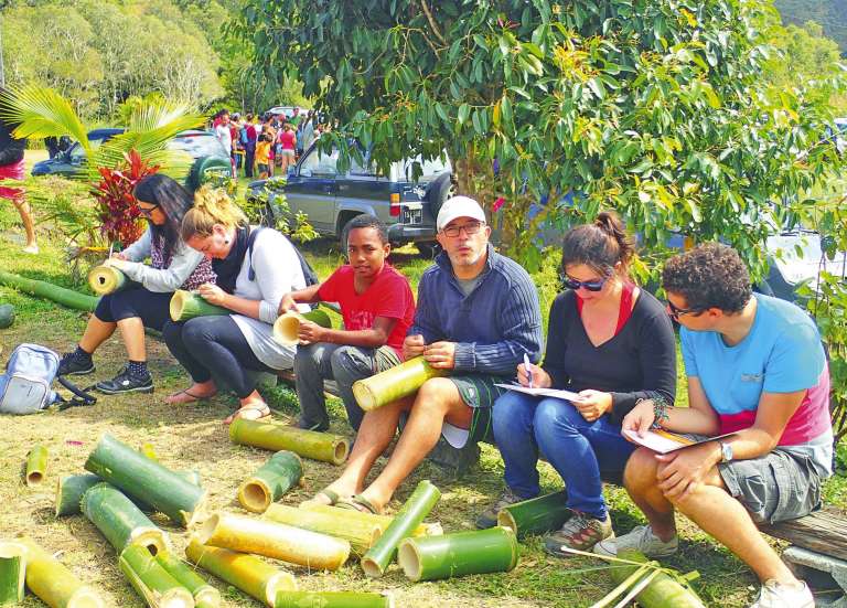 Les participants ont été enchantés de pouvoir se poser un peu, comme ici à l’atelier gravure sur bambou à Koua. La chasse au ver de bancoule en cinq minutes était beaucoup plus sportive.