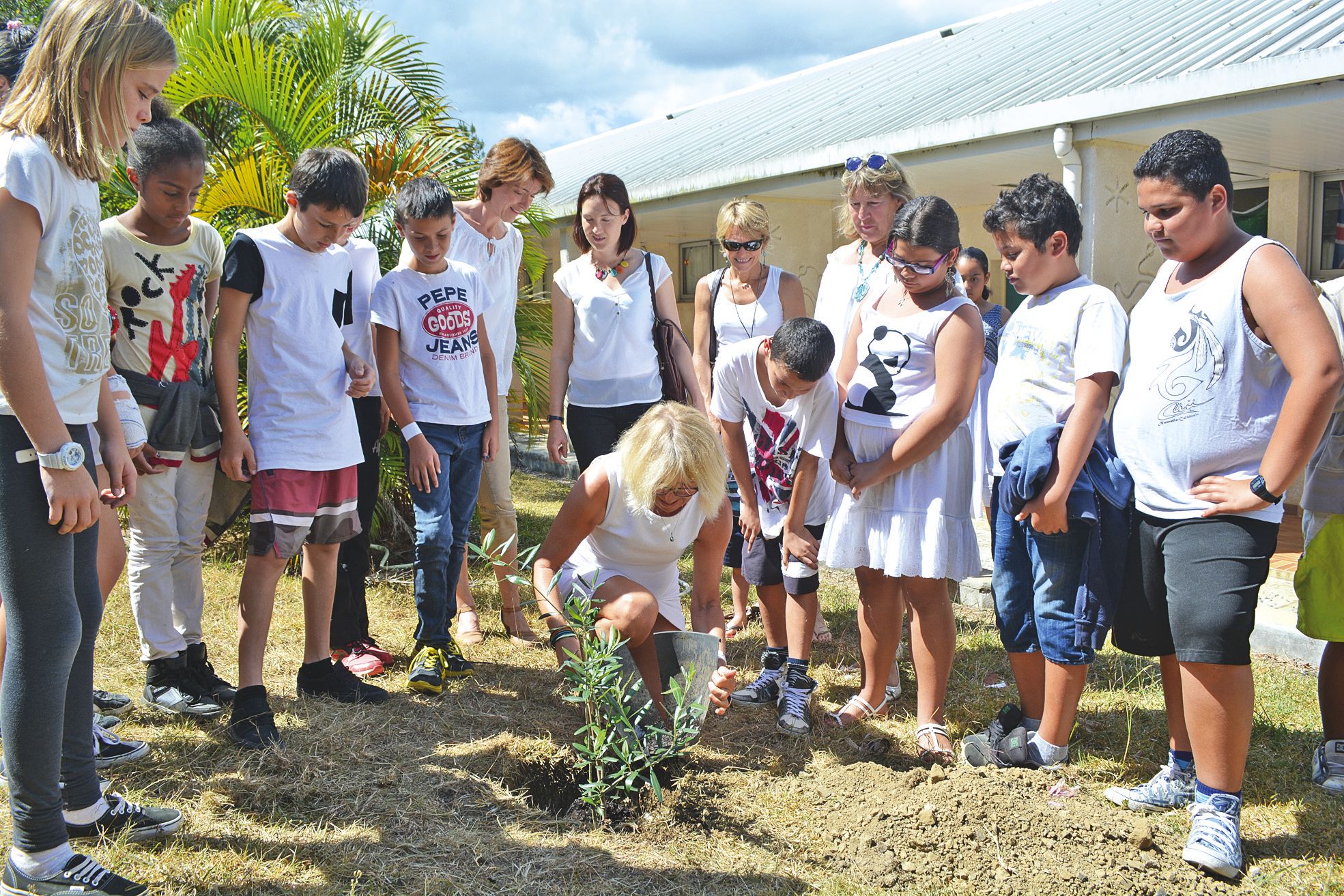 A la récréation du matin, et après avoir signé la charte « Je suis un ambassadeur de la non-violence », tous ont posé pour une photo de groupe. Avant de regagner leur salle de classe, les jeunes de l’atelier scientifique ont planté un olivier, symbole de paix, dans la cour de l’établissement. Ils étaient accompagnés de Sylvie Potin, la directrice.