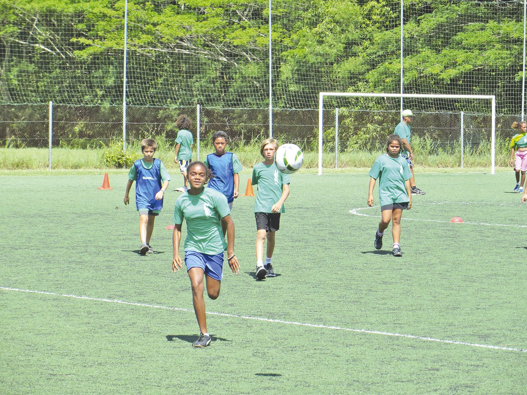 3 > Le terrain synthétique attenant au stade Yoshida a permis aux collégiens d’en découdre, ballon au pied, lors de mini-matches de foot, sous un soleil de plomb.