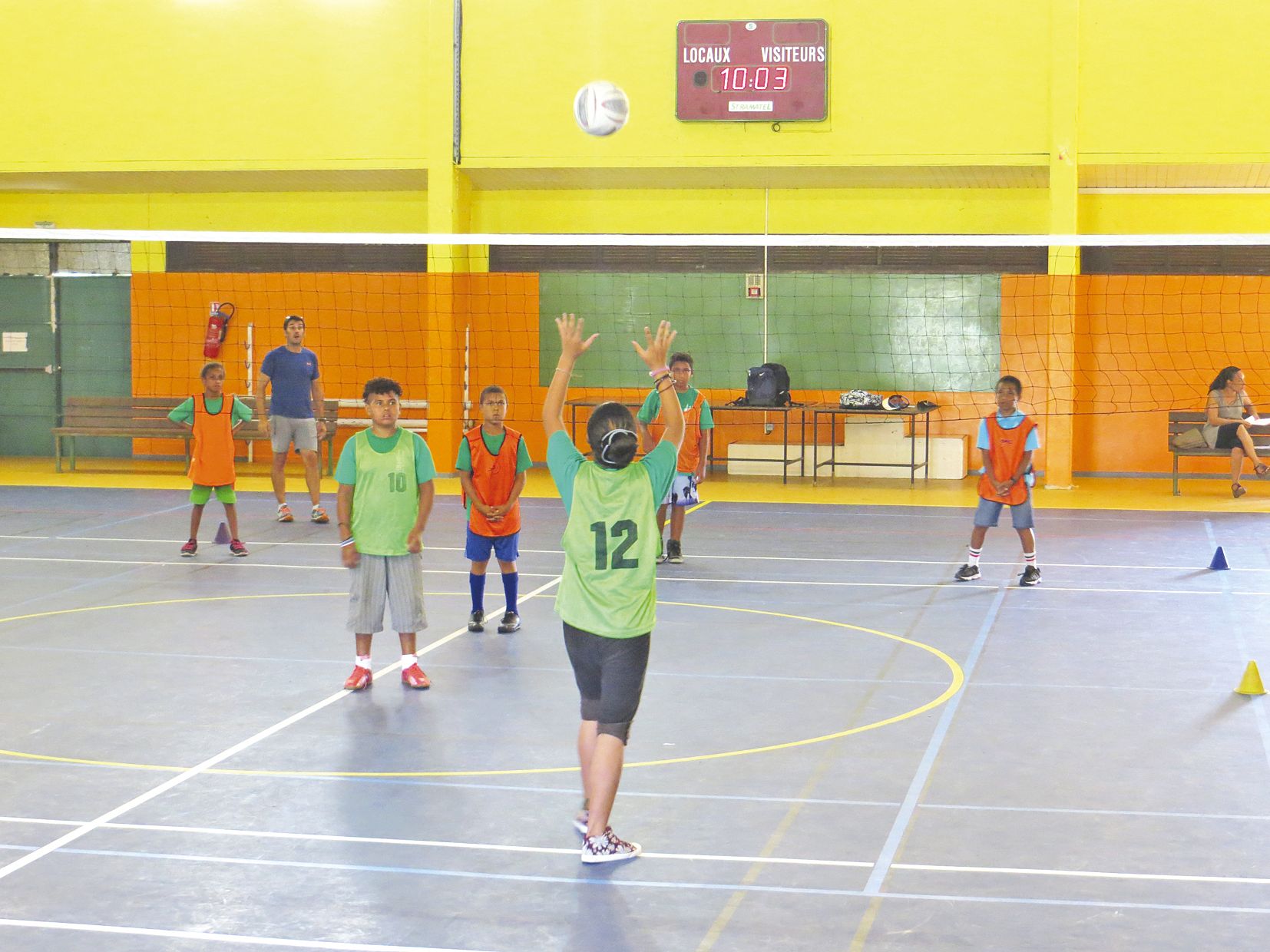 5 > La salle omnisports était consacrée à la découverte du volley-ball et du hand-ball. Les enfants ont affiché une belle énergie de part et d’autres du filet. L’UNSS du collège de Koné propose aussi du badminton, mais les professeurs ont privilégié les sports collectifs pour cette matinée de découverte.