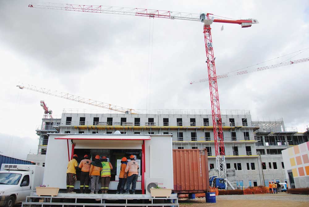 DBAVieMedipole1.jpg ; le 06/28/2013 - 14:56A partir de 11 heures, les premiers ouvriers prennent leur pause. Direction le seul snack du chantier. Ils se relaieront jusqu'à 12 h 30.