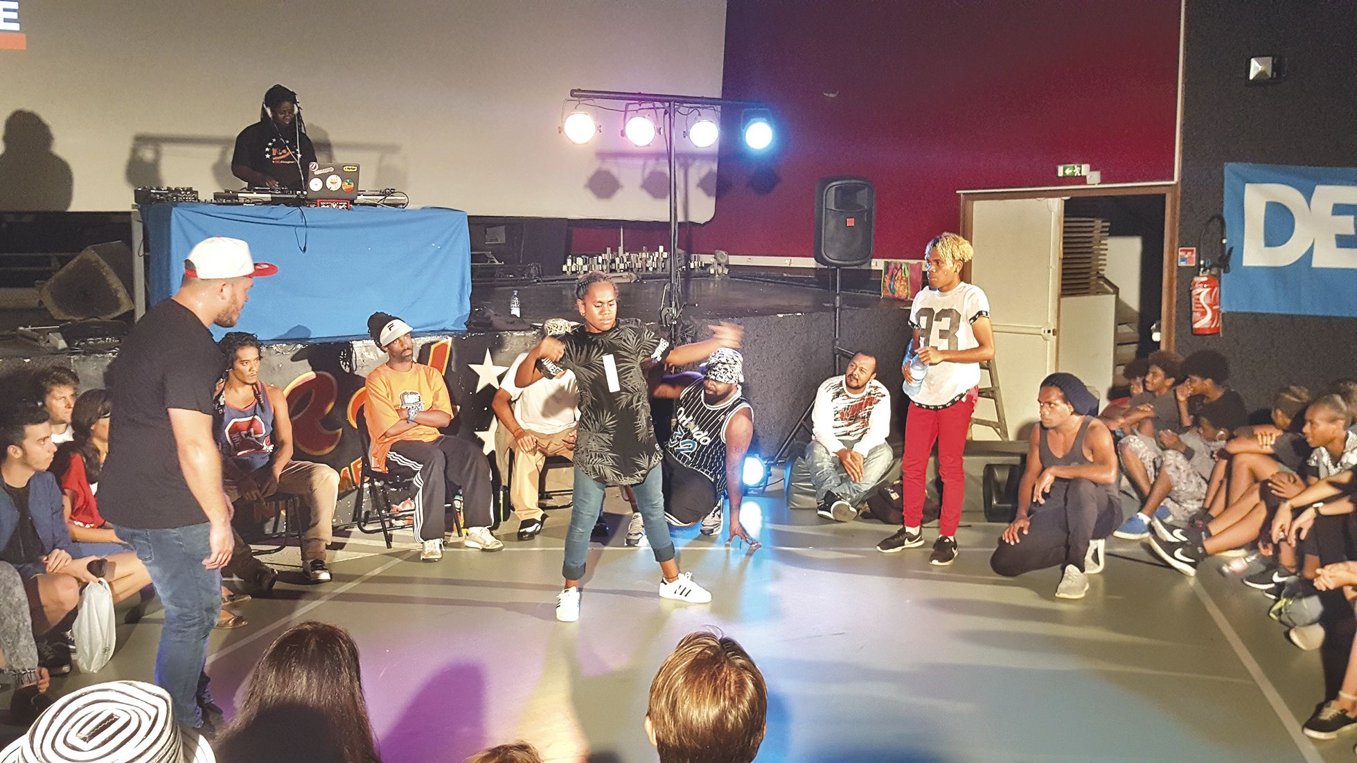 3 > Installé sur deux estrades, le public est venu admirer les performances des danseurs de danse debout, un style à part, explique Karim. « L’idée n’est pas de faire des figures au sol, on danse essentiellement debout, et on mélange les styles, krump, hip-hop, etc. » Et une danse qui demande beaucoup de technique. « C’est très précis, il faut danser sur la musique, surtout être imaginatif, chercher des gestes et des pas que les autres ne font pas. »