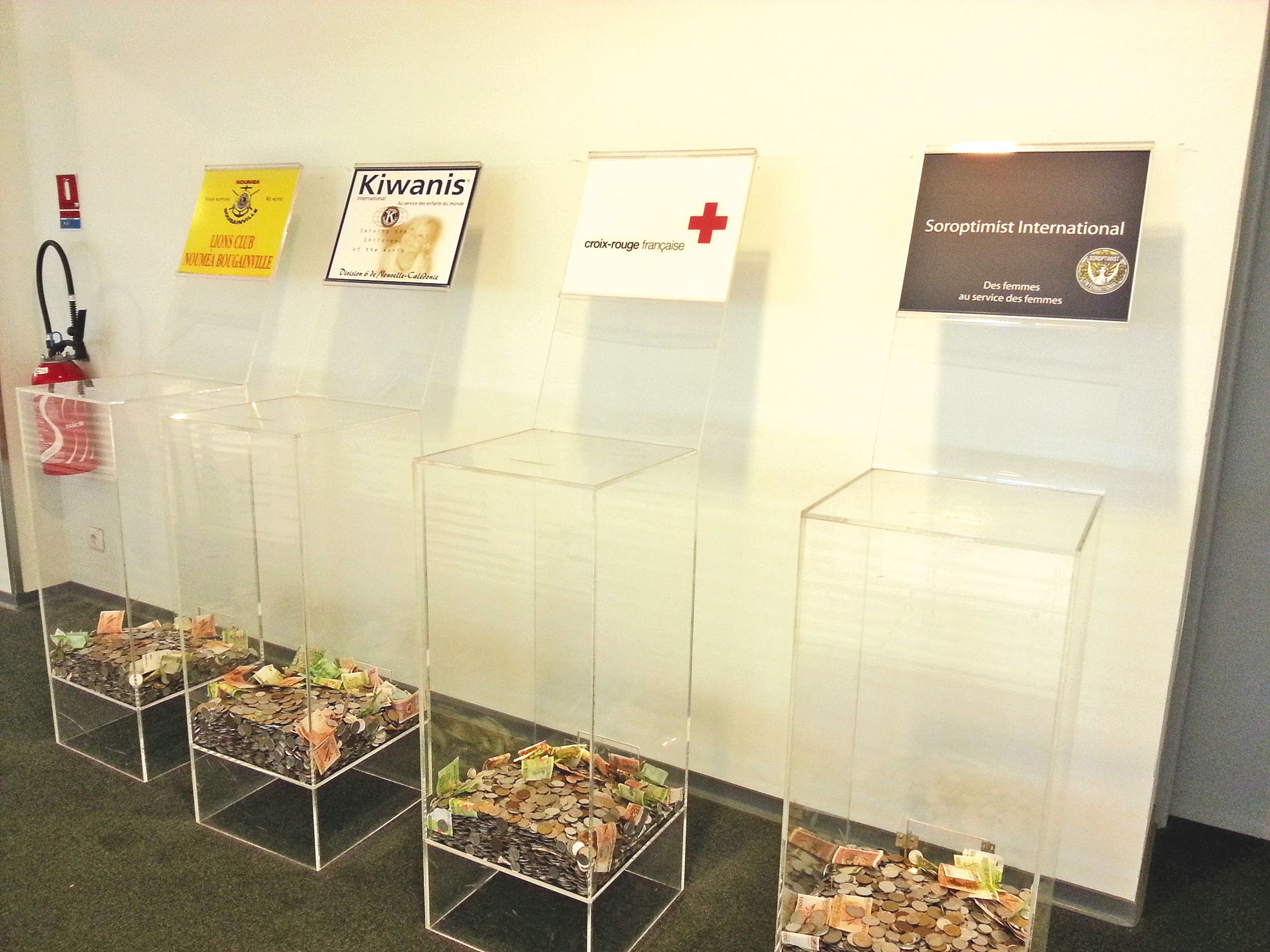 Lions club, WWF, Rotary… Huit organisations disposent d’une urne mise à disposition par la CCI à l’aéroport de La Tontouta. Mais la place vient à manquer : la dernière a dû être partagée entre France Alzheimer et le Secours catholique.