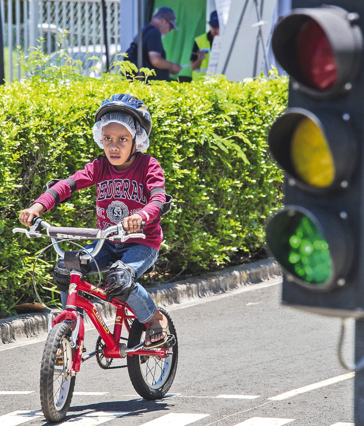 5 > Casques et genouillères étaient de la partie pour apprendre à se déplacer en toute sécurité. L’association Prévention routière NC proposait en effet une animation aux jeunes piétons ou cyclistes, usagers de la route en formation.