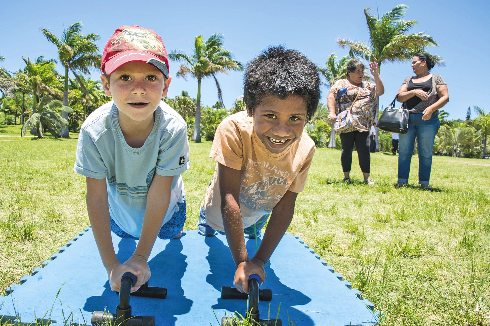2 > Un parcours sportif mettait les muscles des plus jeunes à l’épreuve à travers des séries de pompes, d’abdominaux, de cordes à sauter et d’haltères. L’occasion d’une saine compétition.