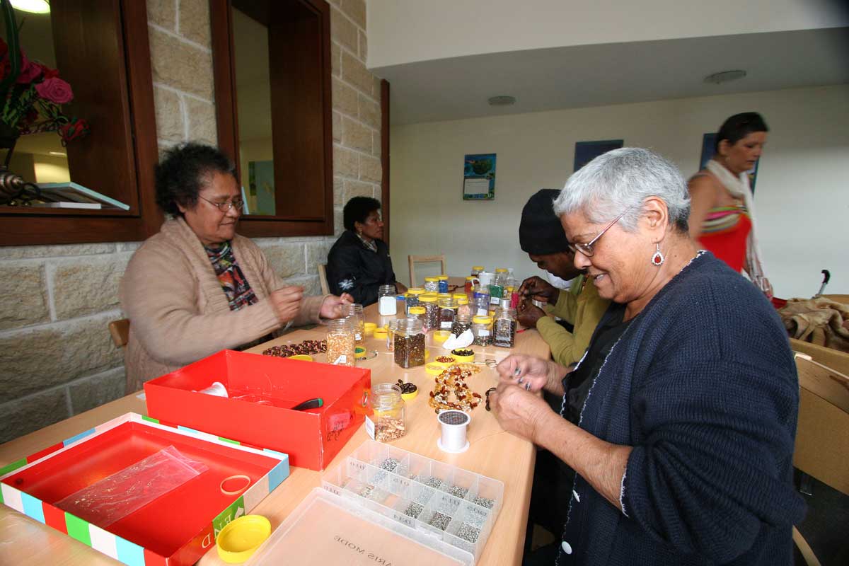 Les evasanés de Beautemps-Beaupré ; le 06/22/2011 - 22:10Pour passer le temps, les pensionnaires discutent, regardent la télévision ou participent aux activités proposées par l'Avec, comme ici un atelier perles.Photo O.C.