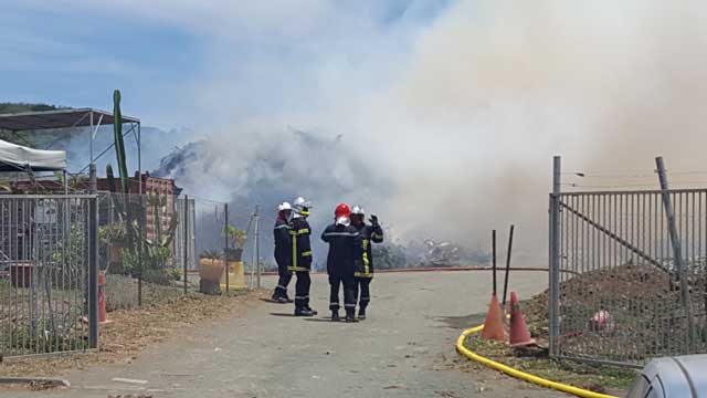 L'incendie s'est déclaré ce matin à la déchetterie de la société Mana, rue Georges-Lèques, à Normandie, avant de partir à l'extérieur jusqu'à embraser le faré de la gendarmerie voisine. Pour voir la vidéo de ce second incendie, cliquez ici. Photos Charlie Réné.