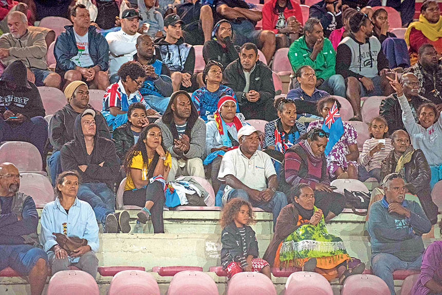 4 > Malgré un temps incertain, le manque d’enjeu et l’actualité politique chargée, Numa-Daly a réussi à presque remplir sa tribune principale. Près de 2 000 personnes étaient au stade hier soir dont quelques supporters fidjiens qui n’ont pas hésité à donner de la voix.