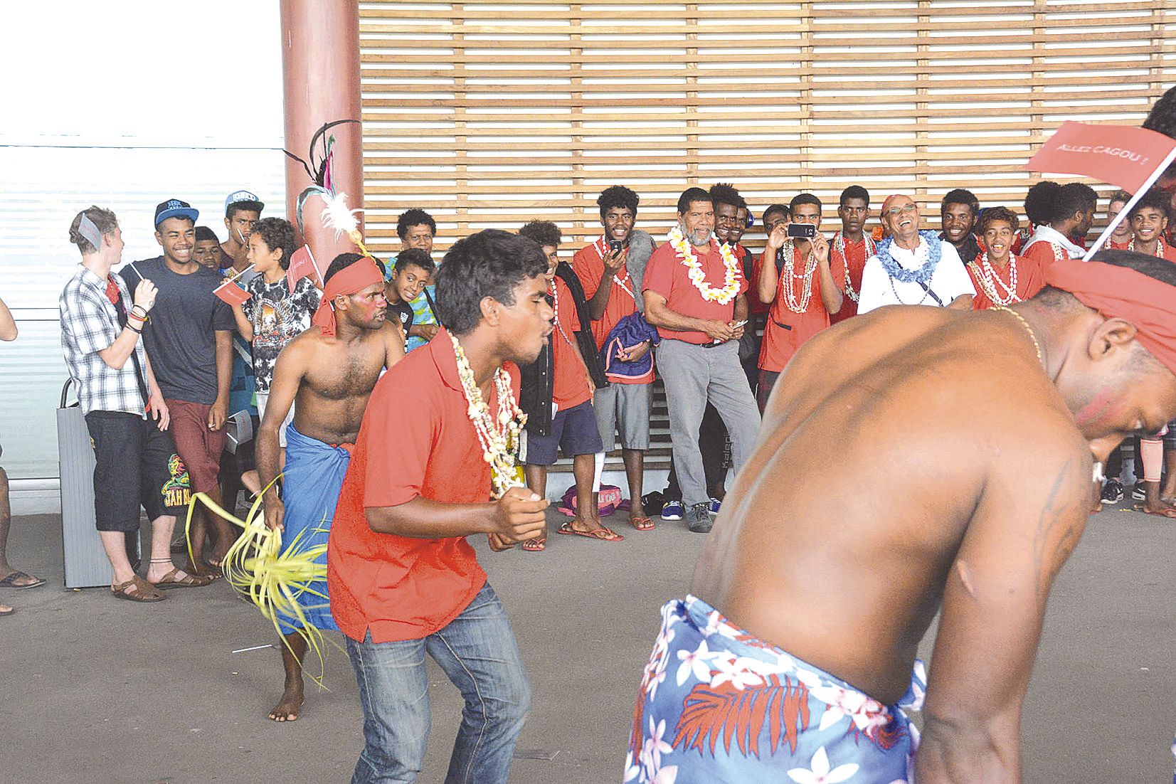 Un accueil de Cagous n’en serait pas vraiment un sans Lax Wejieme et ses danseurs de Wetr. Pour l’occasion, certains joueurs se sont même mêlés au spectacle pour le plus grand amusement de l’assistance.