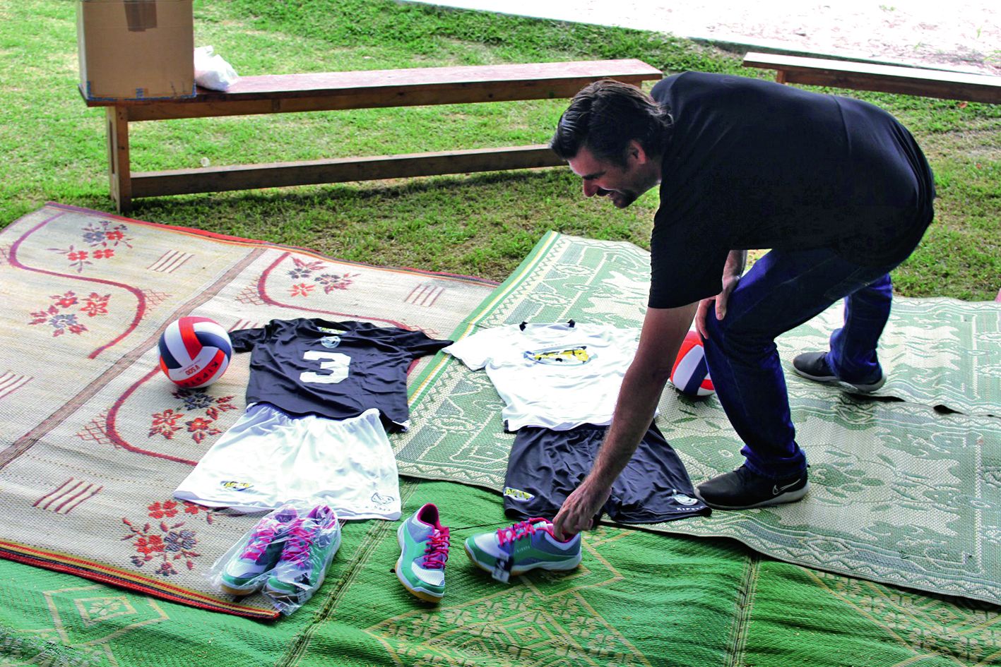 Christophe Dauthieux, gérant d’ACTB, présente le nouvel équipement du club, floqué d’un logo spécialement créé pour ce sponsoring : un moustique sortant de la carte d’Ouvéa. Photos S.M.